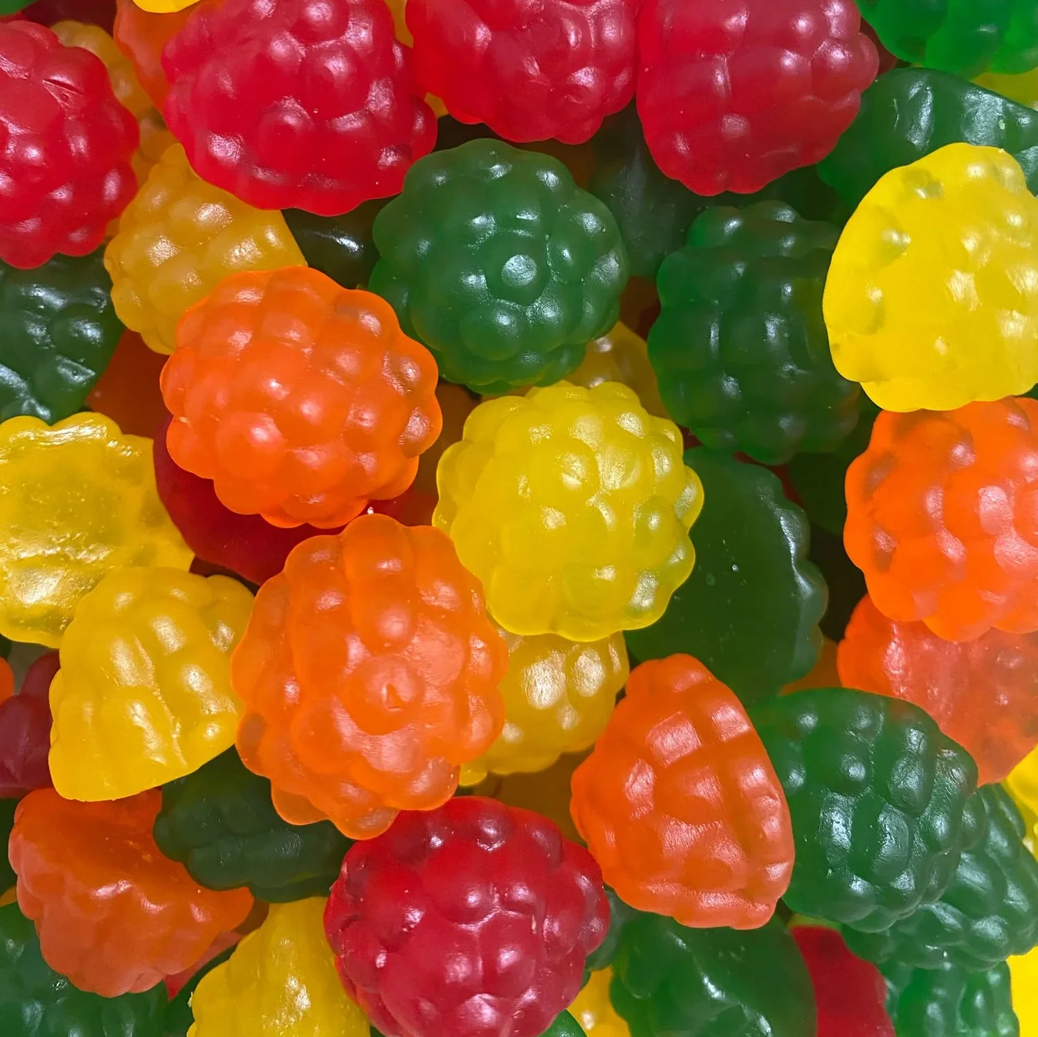 Ingrédients : Sirop de glucose, sucre, eau, gélatine de bÅ“uf Halal, amidon modifié de pomme de terre, acidifiants (E330, E270, E296), pectine, colorants (concentré de carotte, concentré de cassis, E150c, E132), arôme artificiel, émulsifiant (gomme arabique), agent d’enrobage (huile végétale, E901).