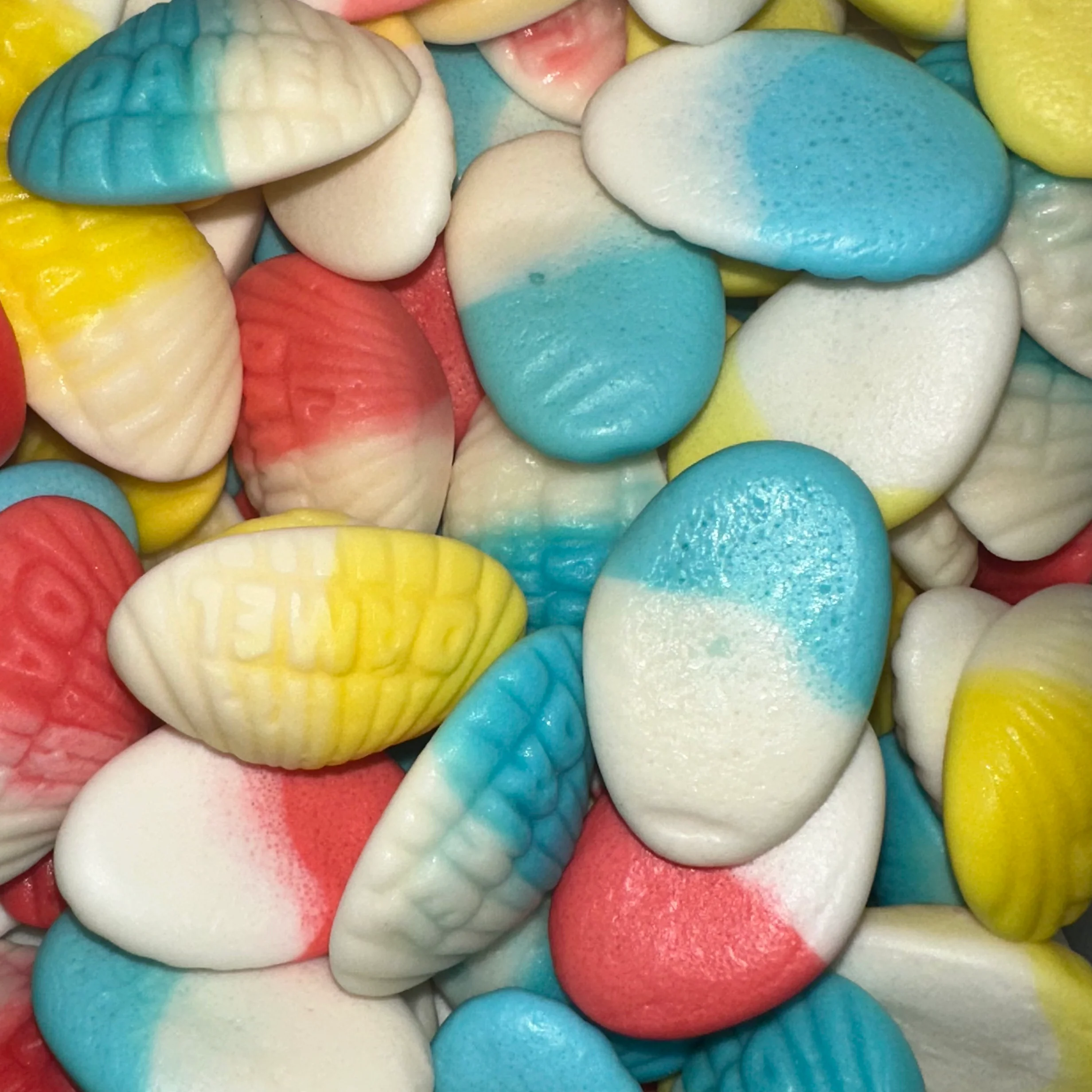 Ingrédients: Sirop de glucose, sucre, eau, dextrose, amidon, gélifiant : gélatine de boeuf halal, huile végétale, arômes et colorants artificiels. Contient du lactose. Sans gluten.