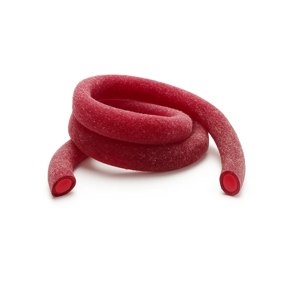 Ingrédients : Sucre, sirop de glucose-fructose, amidon, sirop de sucre inverti, acidifiants E330, E296, eau, farine de blé (contient du gluten), amidon de pomme de terre, maltodextrine, humectant E422, correcteur d’acidité E332, graisse vegétale (Palme), gelatine de boeuf halal, arome artificiel, agents d’enrobage, mono esterate de glycérol (tournesol, E471), huile bégétale (coco, karité) émulsifiant E322, colorants E100, E122, E133, E129. Contient du GLUTEN.