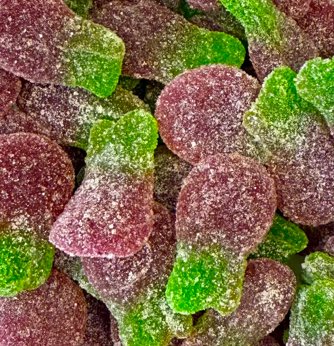 Ingrédients : Ingrédients : Sirop de glucose, sucre, eau, gélatine halal, acidifiants (E330, E296, E270), correcteurs d’acidité (E325, E330), arômes, concentrés (carotte, cassis noir), colorant : E133